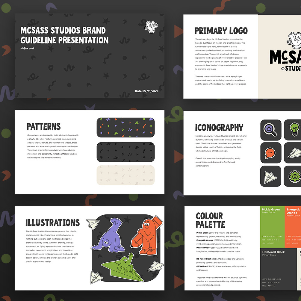• Structured to Impress: Professional layouts that guide you through presenting everything from your brand strategy to your visual identity.